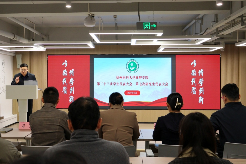 近日,麻醉学院第二十三次学生代表大会暨第七次研究生代表大会在“一站式”学生社区至成多功能厅顺利举行。麻醉学院党委副书记孙晓楠、团委书记许秀、团委副书记司然和各年级辅导员和学生代表参加本次大会。